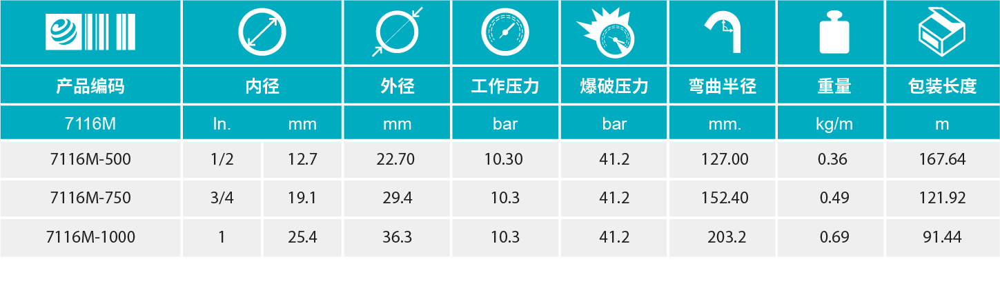 7116M软管用于输送柴油机排气液,广泛用于巴士,重型卡车和越野车上的催化还原(SCR)系统,特制三元乙丙內胶及多层纤维增强层使得软管具有优异的柔韧性和耐扭结性。外胶良好耐磨、耐臭氧。