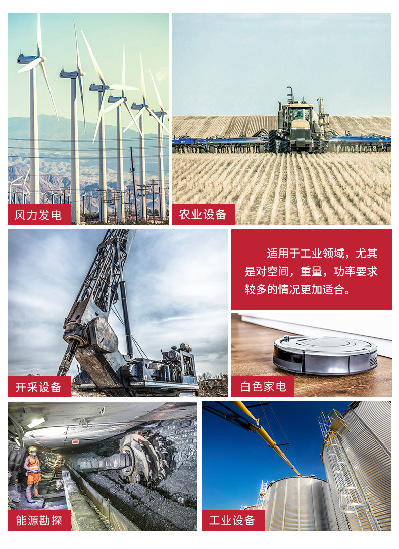适用于工业领域,尤其在对空间,重量及功率要求较多的情况下更为适合。