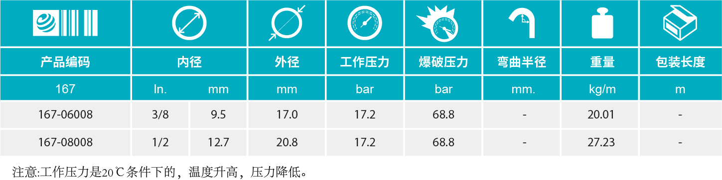 167系列软管具有优异的柔软性和抗扭结性,低误差口径非常便于安装使用以及批量组装作业,软管外胶具有良好的耐磨性,耐臭氧,防紫外线和耐候性。