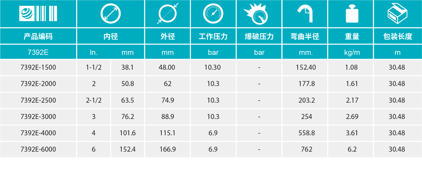 7392E轻型系列软管,用于碱液,盐水,乙二醇,除草剂,一般化学品,泥浆和水的输送和抽吸作业。螺旋钢丝增强层耐负压及耐扭结,三元乙丙外胶具有良好的耐磨性,耐温性,耐候性。