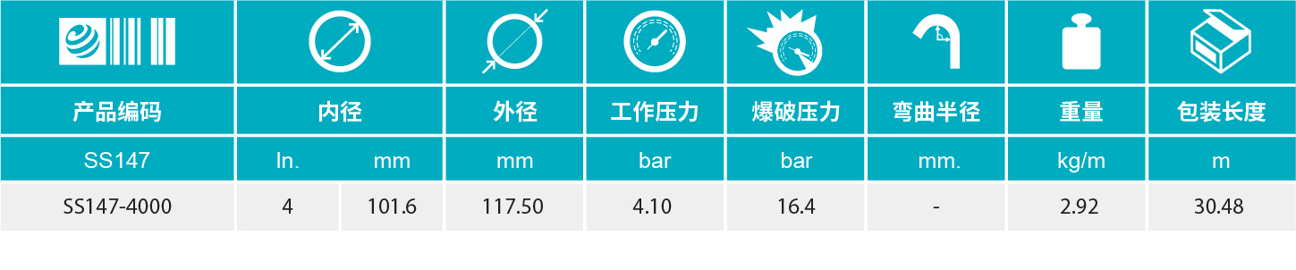 SS147系列软管具有质轻,操作灵活的特点,用于输送磨损性物料,如水泥,泥沙等。3/16"的丁苯內胶有着优异的耐磨性,外层具有良好的防划性,耐磨性和耐风化性。