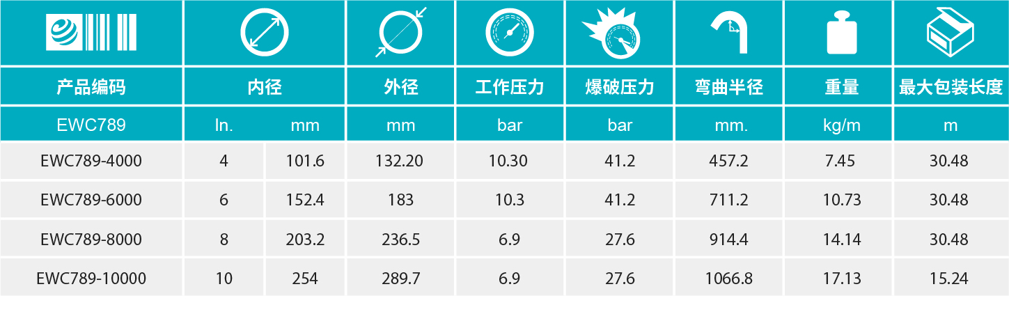 EWC789系列软管是款灵活的物料吸排管,用于下水道排污清洗作业,1/4"內胶具有优良的耐磨性和抗扭结性,内置金属丝可排静电,丁苯外层提供优异的防划性耐磨性和耐风化性。该管广泛应用于建筑,工业和下水道作业等领域。