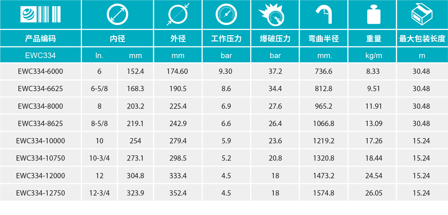 EW334轻型,低压物料输送管,用于输送干燥水泥,粉末等类似磨损性物料。內胶具有良好的耐磨性,持续性和弹性。双螺旋金属丝接地可排静电,丁苯外层提供优异的防划性耐磨性和耐风化性。该管广泛应用于建筑,工业等领域。
